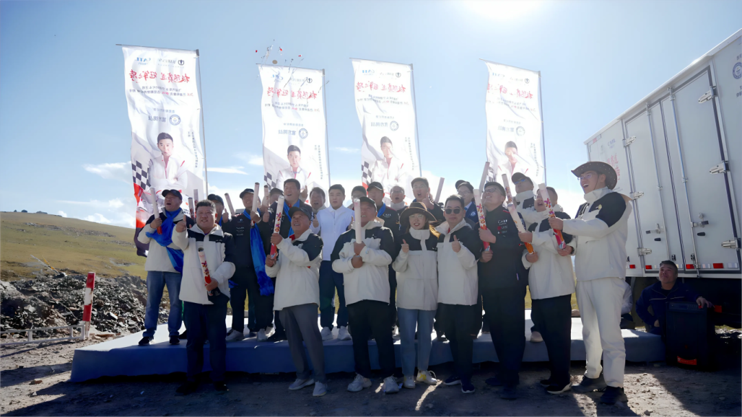 发车指令响起,三车同时冲出起跑线!王皓驾驶飞碟EW7完成首段15公里接力,在连续弯道中行驶稳健;韩高军接续后续20公里征程,电池在3000米高海拔依然表现稳定;飞碟汽车研发总监张克强完成最终极限冲顶,车辆表现出超强操控性与近乎零颠簸的平稳通过性。