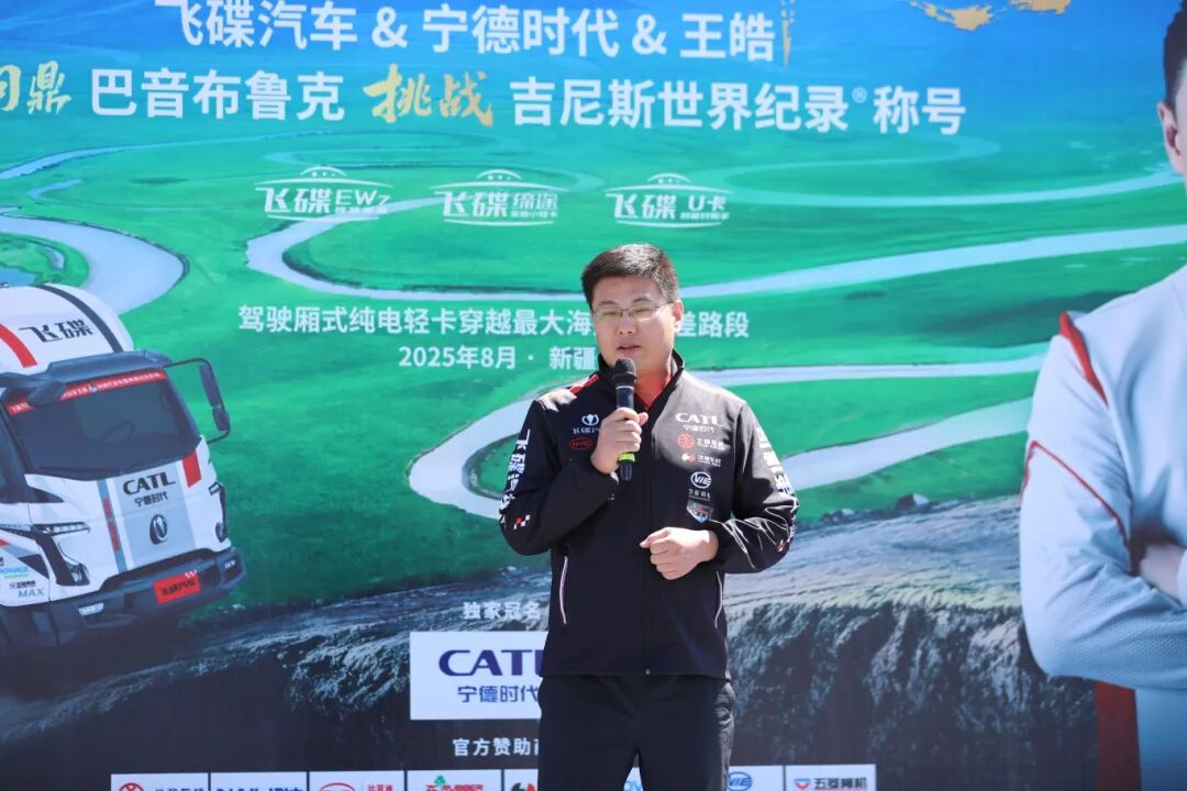 世界冠军王皓表示:“这条‘魔鬼公路’,将成为中国智造的试金石!”宁德时代物流车事业部客户总监韩高军分享了电池尖端科技如何为车辆注入强劲动力,助力征服极端路况。飞碟汽车高级市场总监侯国栋在致辞中表示,飞碟汽车选择以巴音布鲁克极具挑战的“魔鬼路况”作为舞台,意在打破新能源轻卡“续航短、承载弱”的刻板印象。飞碟汽车携手顶尖合作伙伴,凭借领先技术直面146道发卡弯与70度陡坡,以硬核实力验证全场景性能,树立行业新标杆。一切技术突破,最终都将服务于卡友的日常运营安全、高效与收益。飞碟汽车始终践行“司机第一”理念,守护每一位货运人的梦想与责任。