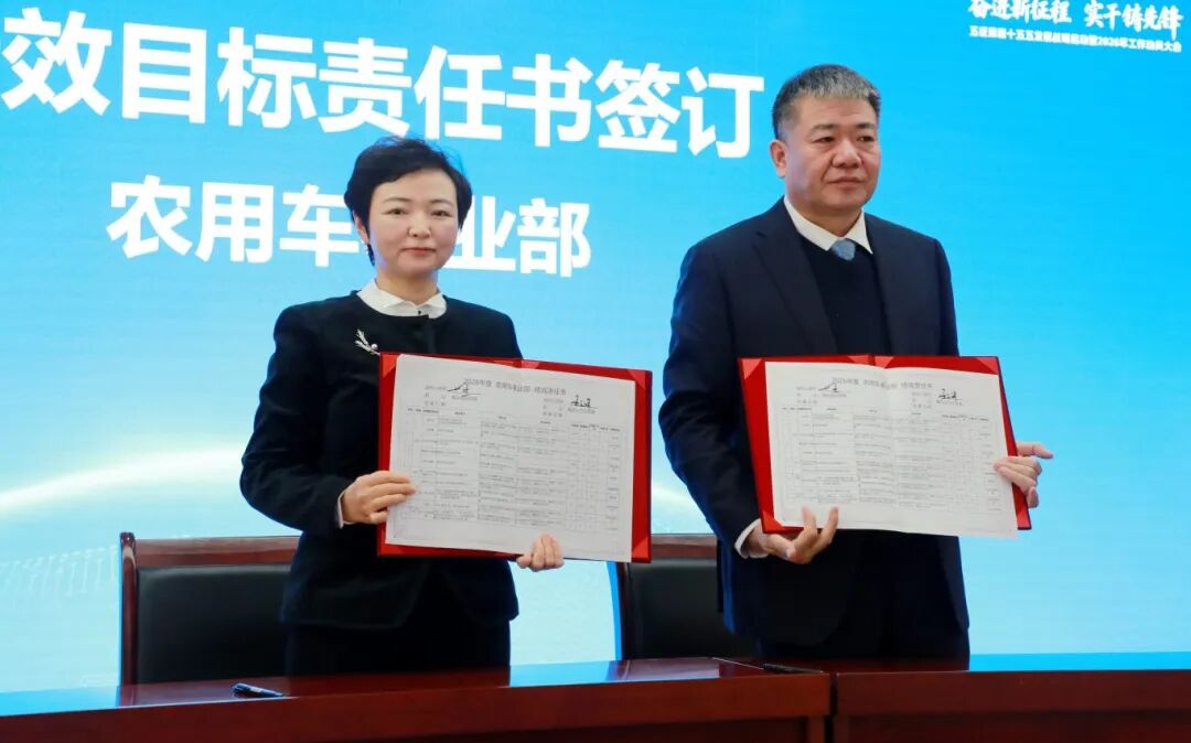姜文娟分别与汽车事业部、环卫事业部、农用车事业部及农业装备事业部负责人签订了2026年度绩效目标责任书。