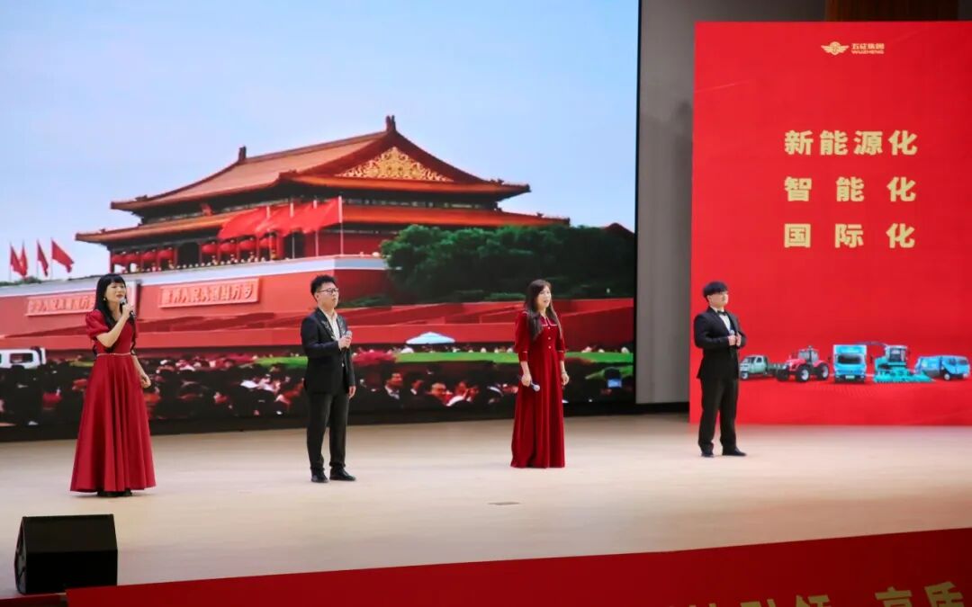 会上歌曲、舞蹈、朗诵等表演节目精彩纷呈。飞碟汽车事业部员工表演了歌曲《我的未来不是梦》和舞蹈《红旗颂》,市北制造基地员工父女朗诵了《五征和我家》,农用车事业部员工演唱了歌曲《我爱你,中国》。飞碟汽车事业部员工、省级非遗传承人周伟英向五征集团敬赠剪纸艺术品《百年五征》。抽奖环节欢声笑语不断,将现场气氛一次次推向高潮。