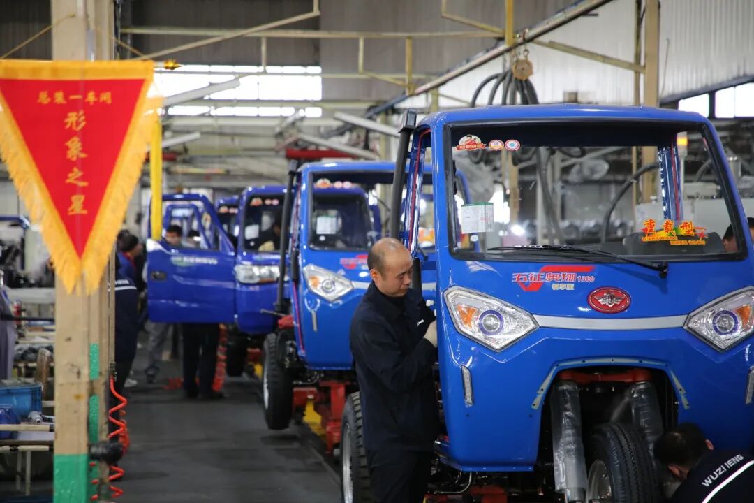 早上7点,农用车发货场上,一辆辆满载三轮车的运输车驶向全国市场及海外港口。总装生产线已全部启动,日产量达400余台,尚欠国内外市场订单7900余台。